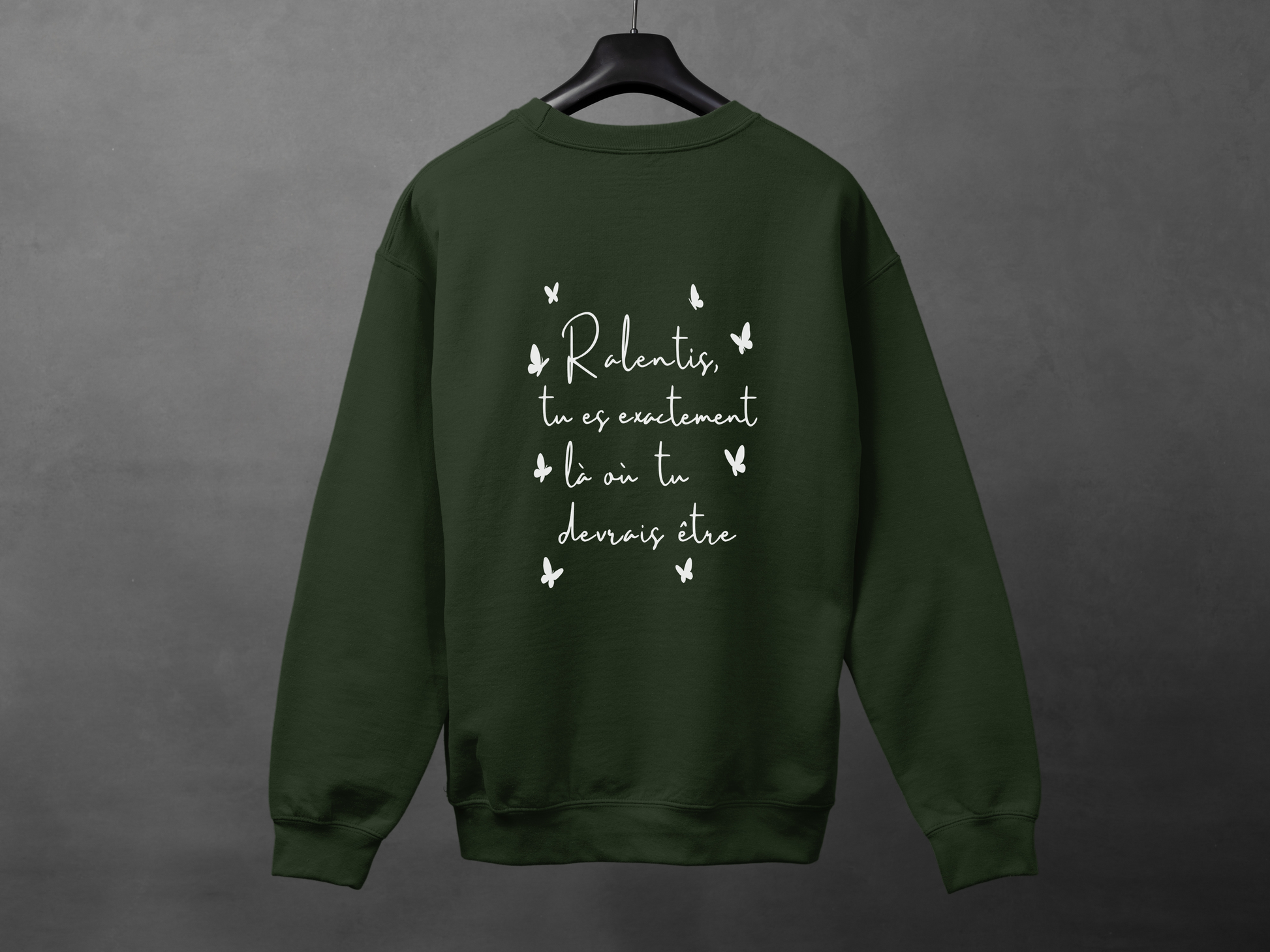 Ce crewneck unisexe, confortable et durable est conçu pour te rappeler que tu n'es pas en retard. Tu voles déjà bien assez haut, joli papillon!🦋