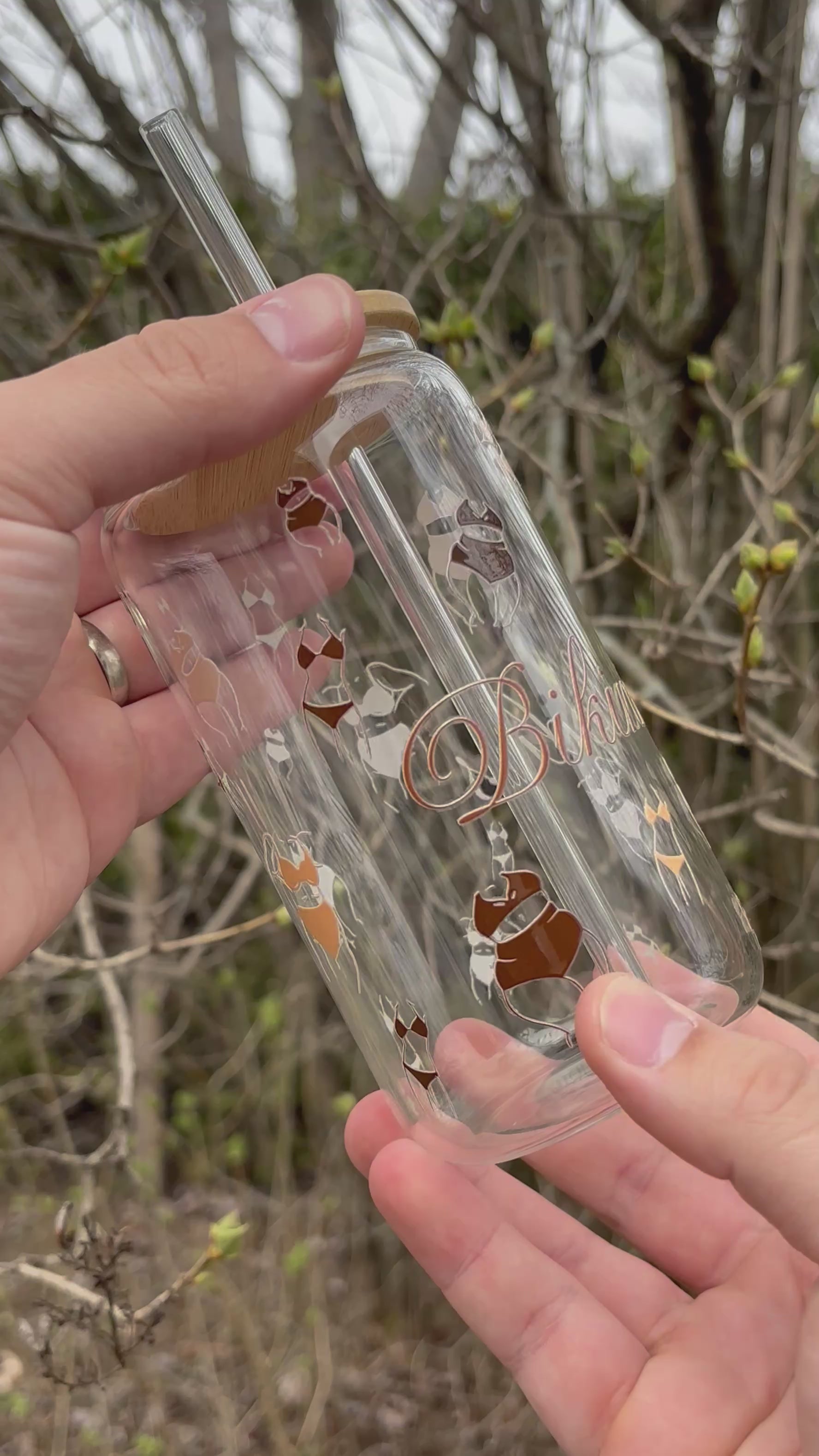 - Couvercle en bambou avec paille en verre.