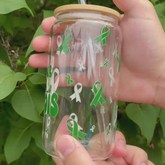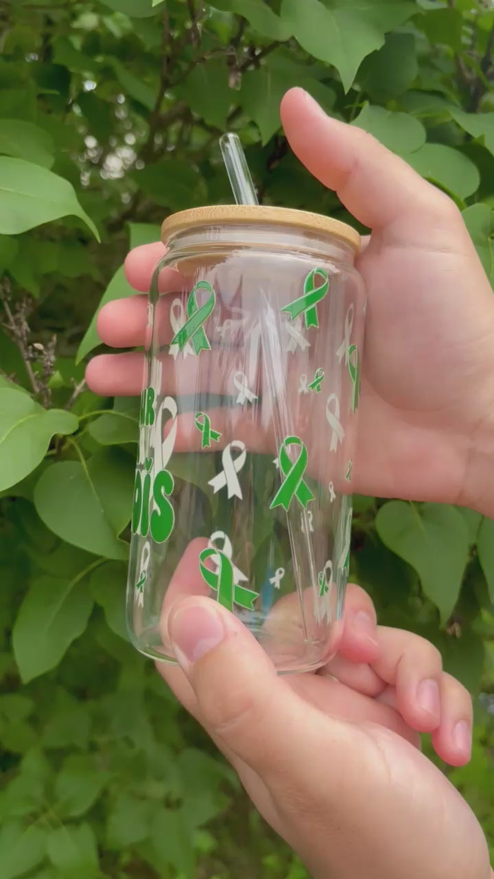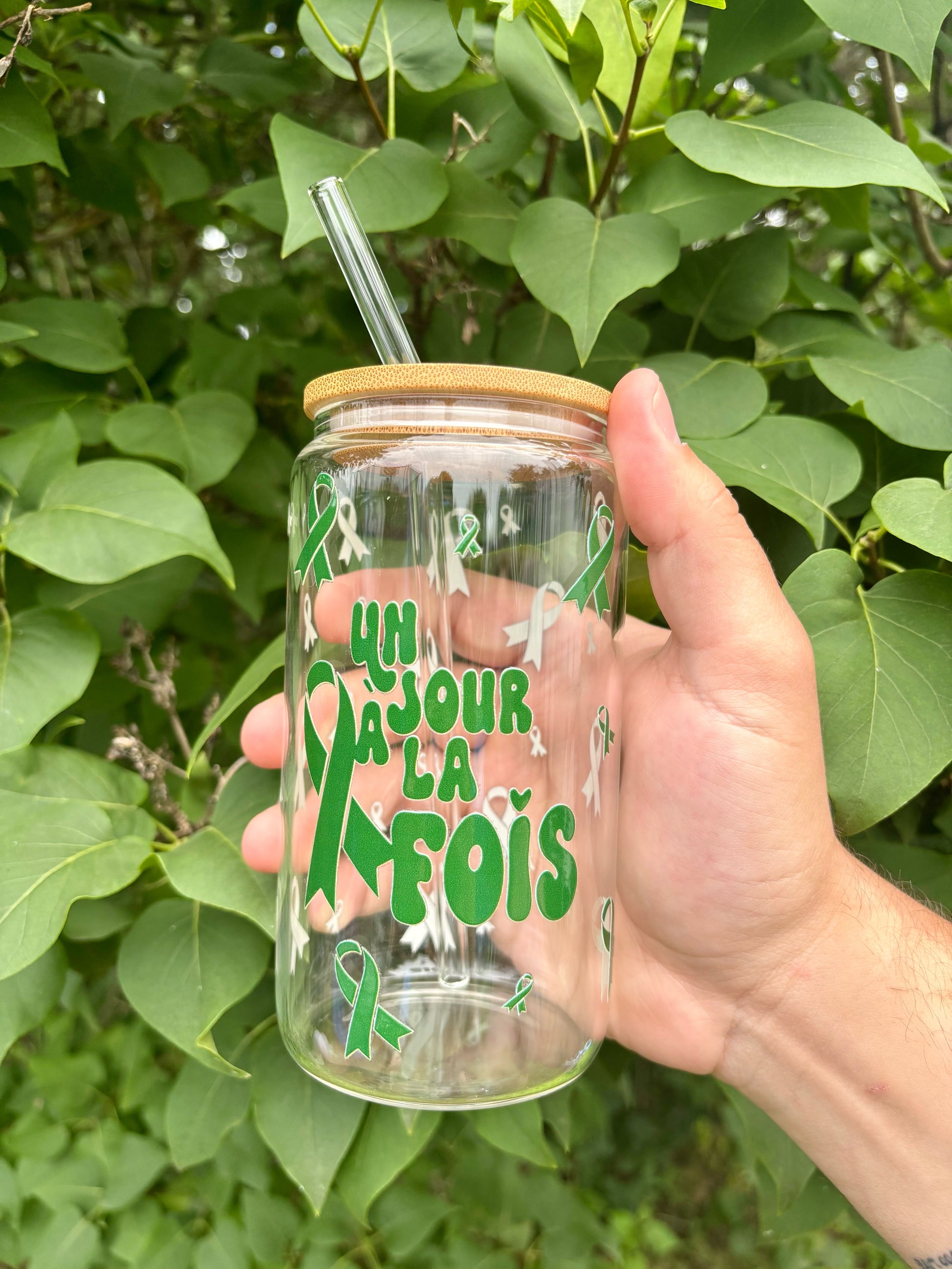 Cette tasse en verre pour breuvages froids est conçue pour rappeler que la guérison de la santé mentale n'est ni linéaire, ni rapide.